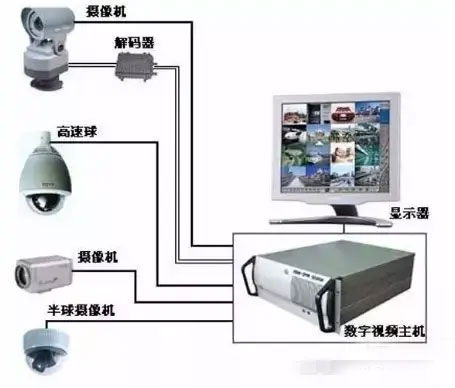 模拟系统的可通过视频分配器分出一路信号分给另一个监控室,网络系统直接网线连接即可,通过电脑客户端打开需要看的图像
