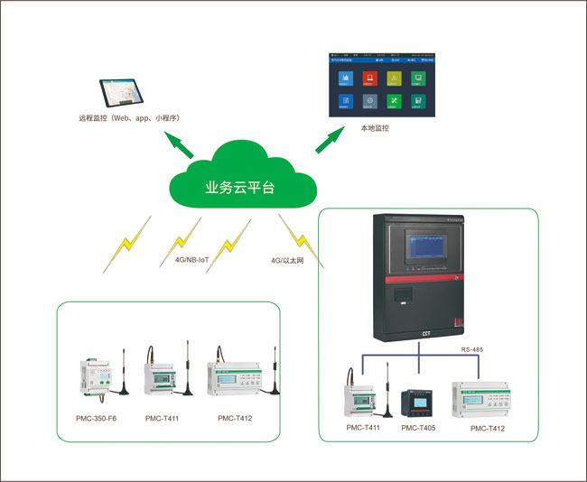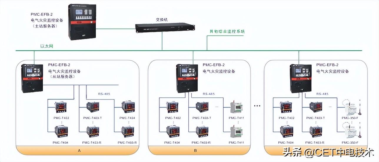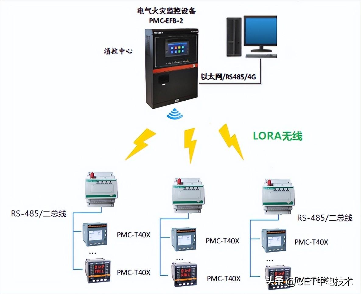 如果还是有很多小伙伴不理解,那以我司的CET中电技术的电气火灾监控系统为例。我司的电气火灾监控系统包括PMC系列电气火灾监控设备、PMC系列剩余式电气火灾监控探测器、PMC系列测温式电气火灾监控探测器、PMC故障电弧探测器以及PMC系列多功能融合探测器等终端进行数据采集。